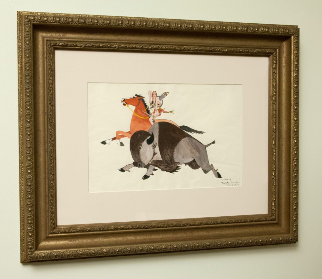 Carl Sweezy reported that all the buffalo had gone from their Reservation by the time he was born, but the animal had been so crucial to Arapaho existence that it remained an iconic image for the tribe. “For hundreds of years we had gone on a long hunt twice a year, whenever our scouts had come in to report that buffalo were plenty out on the Plains; we had held our buffalo dance before we left, and had set out with our best bows and arrows…” “As long as the buffalo roamed the plains, it supplied us with nearly everything we needed. That animal had been given to us in the beginning of things, and we had learned then how many uses it had for us…its hide made our lodge coverings, robes for our beds and for clothing, and shields and parfleches; its paunch made pails and bowls; its tail and hooves made ornaments; its horns made spoons and tools; its sinews made stout cords; its flesh and fat and organs, its blood and even the marrow of its bones made our food.”