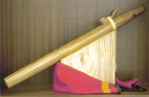 Jim VanDeman has been making flutes about fifteen years. This one is styled after a Kiowa design from the early 1900’s. It was made from a giant red cedar harvested in Geary, Oklahoma. VanDeman donated the flute to the Oklahoma Judicial Center collection.