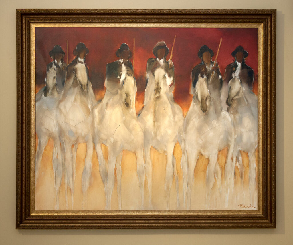 Jean Richardson is an Oklahoma modernist artist with a style that often blends the spiritual with the abstract. Horses are among her favorite subjects. Richardson’s Oklahoma roots run deep, two of her great grandfathers drove cattle through Indian Territory in the 1870s: one as a drover, the other as an owner. Though her cattlemen ancestors traveled through Oklahoma, it was Richardson’s paternal great grandmother, Gertrude Street Darby, who would first call the state home – she set up housekeeping in a half-dugout near the Red River.