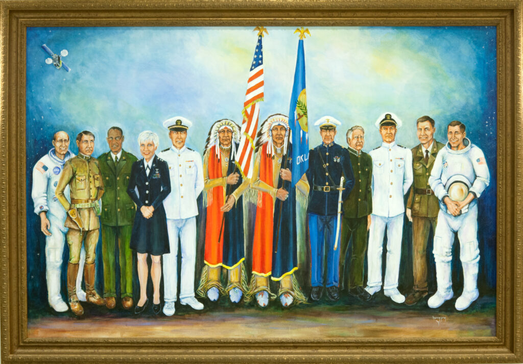 Warriors was commissioned for the Oklahoma Judicial Center as a representation in honor of notable Oklahomans with ties to the justice system who served in the armed forces. Oklahoma’s Warriors protected and defended the Constitution, just as the Judiciary protects and defends the Constitution on a daily basis.