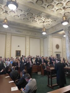 New Lawyers – Swearing-in Oklahoma Supreme Court Chief Justice John Kane administered the oath of attorney to more than 50 new admittees during a ceremonyas the Supreme Court Courtroom inside of the Oklahoma State Capitol building.