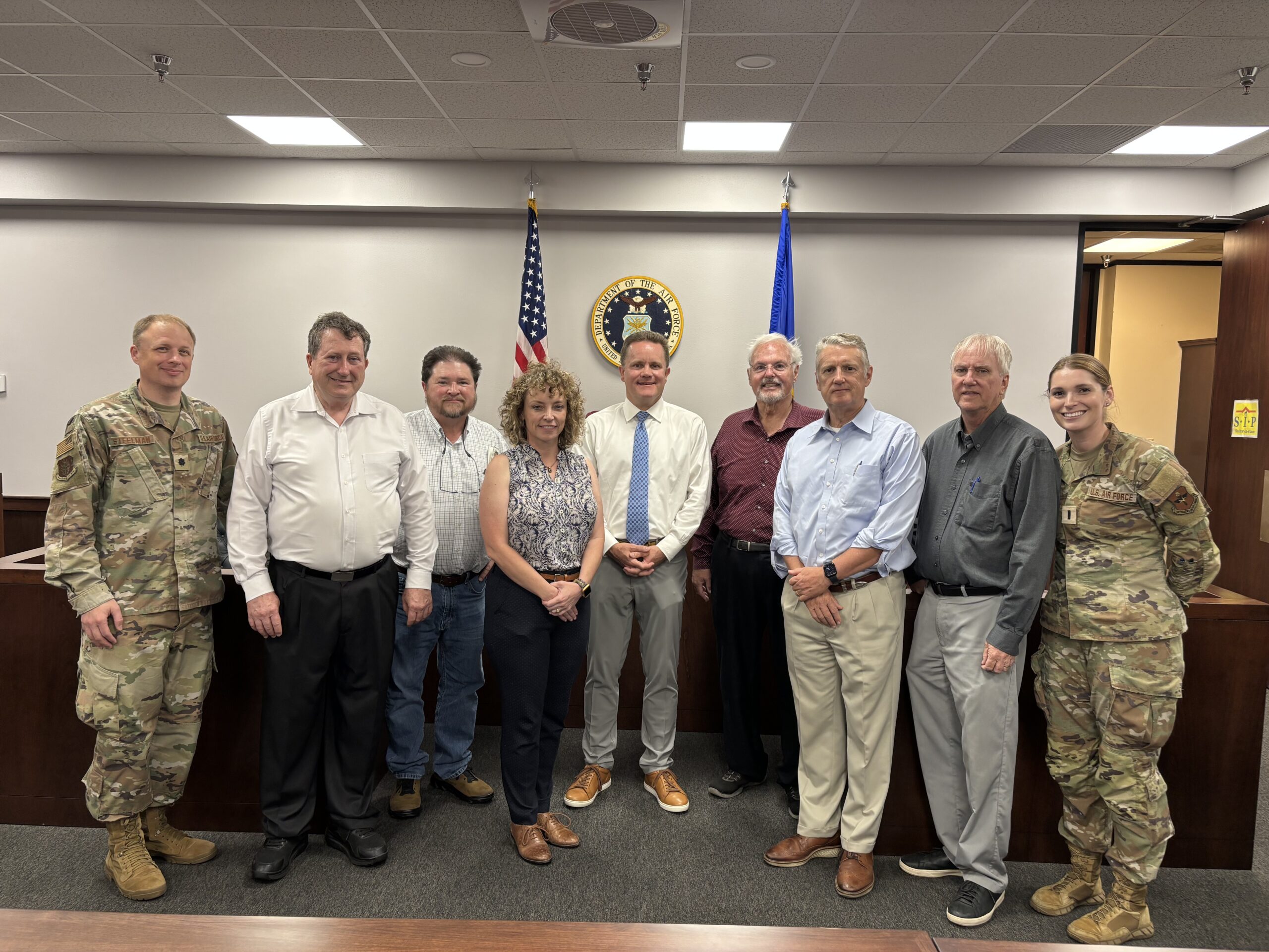 Chief Justice Rowe met with judges of the third judicial district, which includes Jackson, Tillman, Kiowa, Greer and Harmon counties. The meeting was hosted on Altus AFB where the judges met with Air Force JAG attorneys and toured the AFB, including the newly-renovated base courtroom.